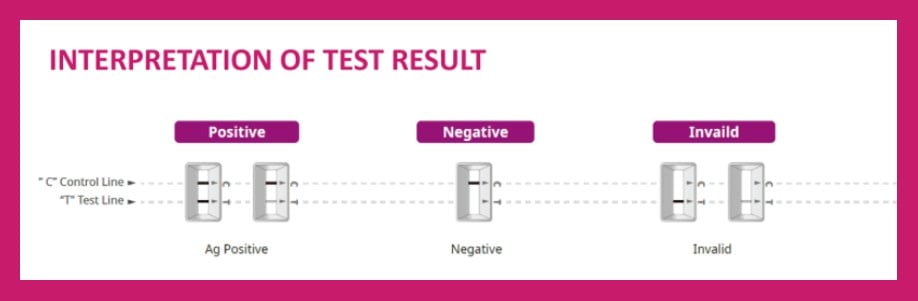 Sekiranya anda melihat dua garis merah pada bahagian C dan T, ini menunjukkan keputusan yang positif. Garisan boleh kelihatan jelas atau samar-samar. Ini bermakna anda positif Covid-19.