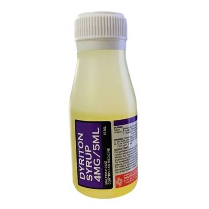 Dyriton (Chlorpheniramine) 4mg/5ml Syrup ialah ubat oral mudah digunakan daripada kumpulan antihistamin. Ia mengandungi bahan aktif Chlorpheniramine Maleate, yang membantu mengurangkan gejala alergi dan tindak balas badan tertentu. Sesetengah individu mungkin mengalami kesan sampingan seperti mengantuk, pening, mulut kering, atau penglihatan kabur—namun biasanya ringan dan sementara. Syrup ini mempunyai rasa manis yang sesuai untuk dewasa dan kanak-kanak apabila disyorkan oleh doktor. Pastikan anda mengikuti arahan dos dengan betul, dan elakkan memandu atau mengendalikan mesin jika berasa mengantuk.