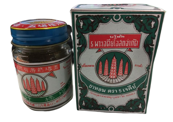 Serbuk Ya Hom Five Pagodas ialah penawar herba tradisional Thai yang terkenal dan digunakan secara turun-temurun untuk meredakan pening kepala, loya, kembung perut, dan keletihan. Sama ada anda berasa pening akibat perjalanan, cuaca panas, atau gangguan pencernaan, serbuk aromatik yang menyegarkan ini memberi kelegaan semula jadi dan pantas. Dengan bau herba yang unik dan kesan yang cepat, ia menjadi pilihan asas di banyak rumah di seluruh Asia Tenggara. Sesetengah pengguna mungkin mengalami sedikit rasa pedih di tekak, rasa hangat, atau mulut kering—tetapi kesan ini jarang berlaku dan selalunya hilang dengan cepat.