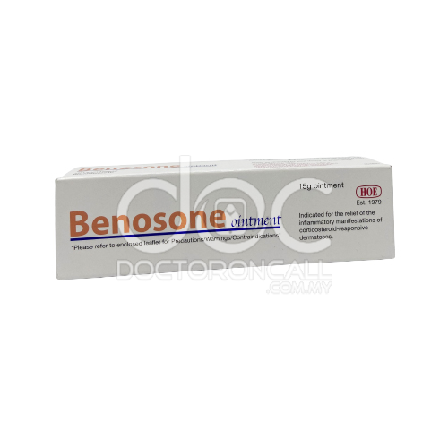 - Di Malaysia, HOE Benosone Ointment mungkin memerlukan preskripsi yang sah bergantung pada peraturan semasa—ahli farmasi kami akan membantu anda semasa checkout jika perlu.