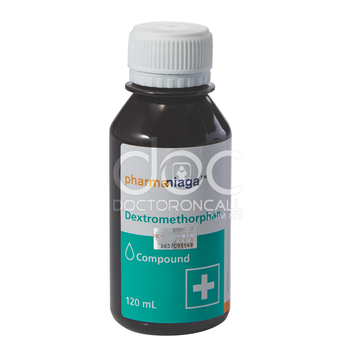- Sirap Kompaun Dextromethorphan Pharmaniaga biasanya boleh didapati tanpa preskripsi, tetapi kami sentiasa menyarankan supaya berbincang dengan ahli farmasi, terutama apabila ia diberikan kepada kanak-kanak.