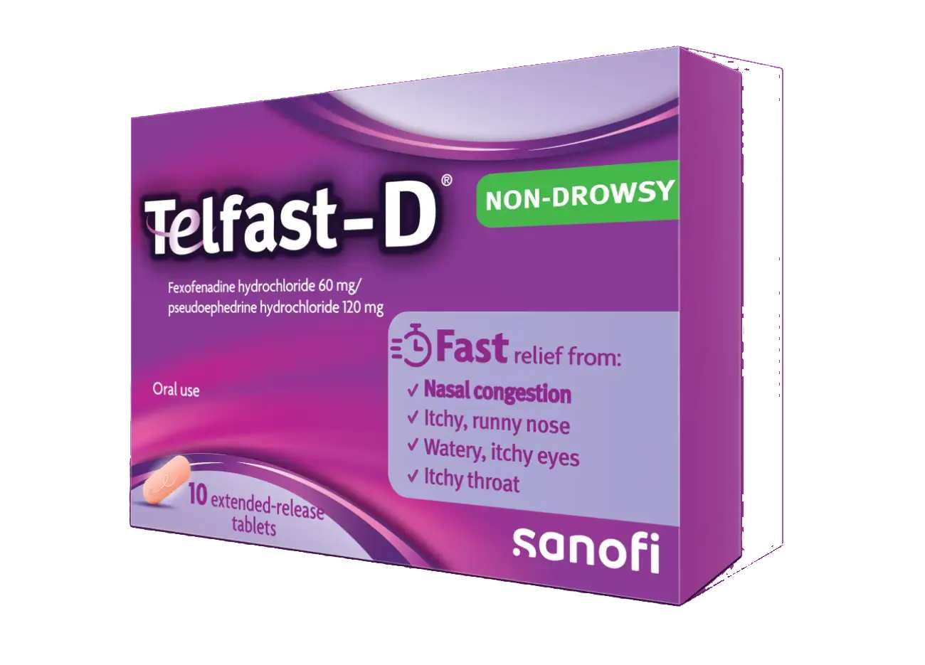 Setiap tablet mengandungi Fexofenadine Hydrochloride 60mg dan Pseudoephedrine Hydrochloride 120mg.