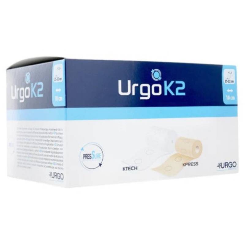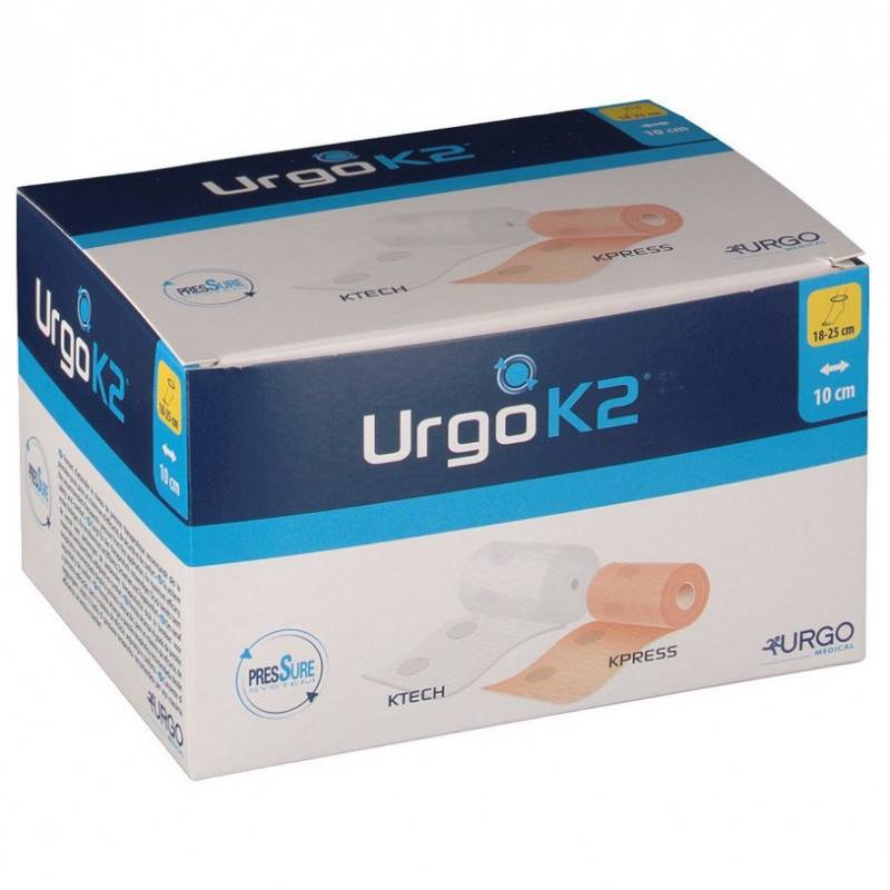 Urgo K2 Latex Free menggunakan sistem mampatan dua lapisan: satu lapisan memberikan kusyen dan mengawal kelembapan manakala lapisan kedua menyediakan tahap mampatan yang betul untuk meningkatkan aliran darah. Ini meningkatkan bekalan oksigen ke tisu yang terjejas dan membantu dalam proses penyembuhan luka yang lebih cepat serta mengurangkan bengkak.