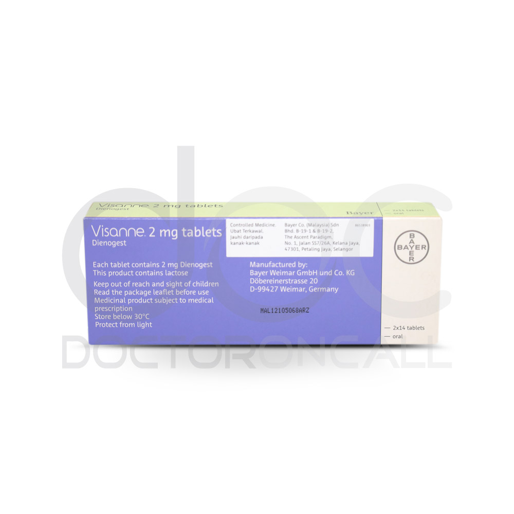 Visanne (Dienogest) 2mg Tablet ialah ubat pres yang tergolong dalam kelas progest sintetik. Bahan aktifnya dienogest, yang berfungsi dengan mempengaruhi keseimbangan hormon dalam badan. Beberapa kesan sampingan biasa yang mungkin anda perhatikan termasuk sakit kepala, ketidakselesaan payudara, perubahan mood, dan loya sesekali. Jika anda merancang untuk mula mengambil ubat ini, anda perlu tahu bahawa ia berasaskan hormon, perlu diambil secara tetap, dan mungkin mengambil masa sebelum anda merasai kesan sepenuhnya—jadi jangan risau jika anda tidak melihat perubahan serta-merta. Sentiasa ikuti nasihat doktor semasa menggunakannya.