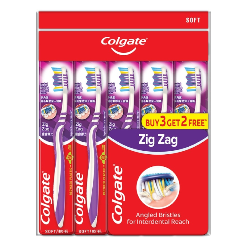 The Colgate Zig Zag (Soft) Toothbrush features angled cross bristles designed to sweep away plaque from hidden spaces between your teeth and along your gum line. Its soft bristles clean gently yet thoroughly, promoting good oral hygiene without causing irritation.