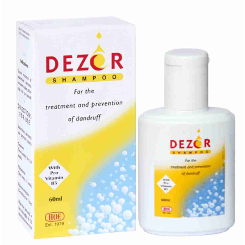 Apply HOE Dezor Plus Shampoo to wet hair and scalp, massage it gently, leave it on for a few minutes, then rinse thoroughly.