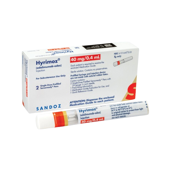 Hyrimoz 40mg/0.8ml Injection is a prescription injectable medication that belongs to a class of drugs known as tumor necrosis factor (TNF) inhibitors. The active ingredient in this pre-filled syringe is Adalimumab-adaz, a biosimilar of the original biologic drug adalimumab. Some common side effects include redness or swelling at the injection site, headache, nausea, and mild infections like cold or flu symptoms. If you’re considering this product, you should know it’s already prepared for use in a pre-filled syringe, making it simple for home administration under guidance, and it must be prescribed by your healthcare provider. Always be aware of possible allergic reactions and tell your doctor about any history of infections.