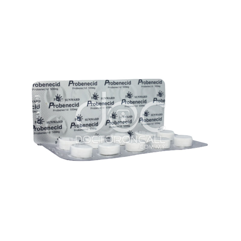 Sunward Probenecid may interact with medications such as antibiotics (especially penicillin), NSAIDs, sulfa drugs, and blood thinners. Avoid consuming alcohol while on this medication, as it may increase your risk of side effects or decrease effectiveness. Consult your doctor or pharmacist to ensure safe medication combinations.