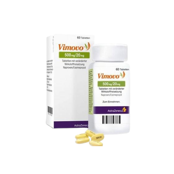 Vimovo 500/20mg Tablet is a powerful prescription medication that combines two active ingredients—naproxen, a non-steroidal anti-inflammatory drug (NSAID), and esomeprazole magnesium, which belongs to the class of proton pump inhibitors (PPIs). While it’s not just a simple pain reliever, it also helps minimize stomach problems commonly caused by NSAIDs. Some common side effects you may notice include headache, indigestion, heartburn, or dizziness. Wondering if it’s right for you? It’s always best to speak with a healthcare professional—especially before starting any new meds. Also, don’t be alarmed if your doctor recommends regular monitoring—it’s just part of keeping things safe!